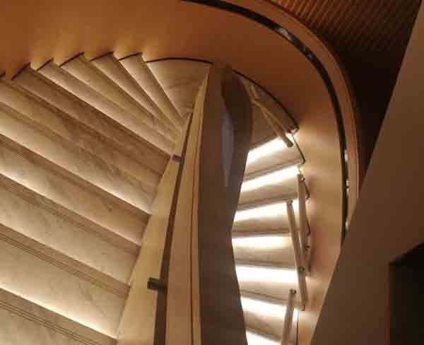 2. 優化空間利用:旋轉樓梯的設計使得樓梯所占用的平面面積大大減小,從而優化了建筑空間的使用效率。這對于空間有限的住宅或小型商業空間來說,無疑是一個巨大的優勢。